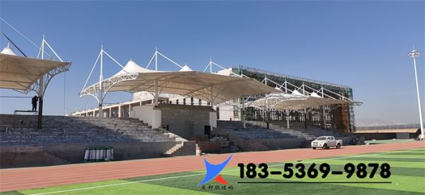 膜結(jié)構(gòu)看臺造型美觀大方,空間跨度大。更好的體現(xiàn)了膜結(jié)構(gòu)建筑空間跨度的優(yōu)勢,而且施工周期短。