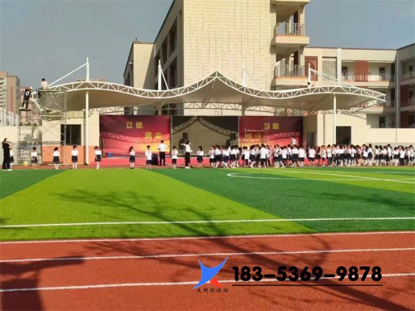 2、膜結(jié)構(gòu)體育看臺(tái)建造施工工期短,膜結(jié)構(gòu)加工制造都是在工廠內(nèi)完成的,縮短了施答工時(shí)間,從而也為企業(yè)節(jié)省了施工成本。