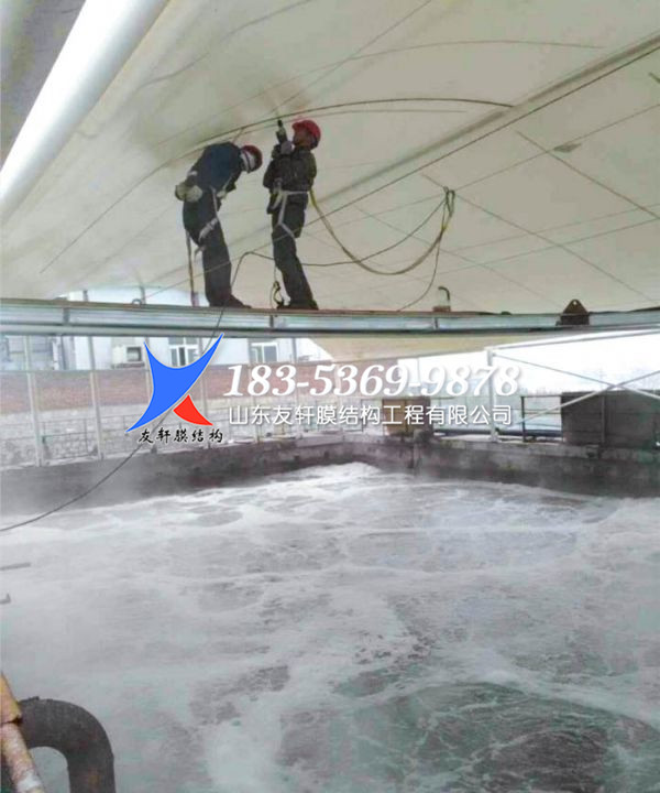 3、造價(jià)低。一般來說污水池的跨度一般較大,需要鋼材多。使用反吊膜建筑可有效減少鋼材使用率,從而降低成本。